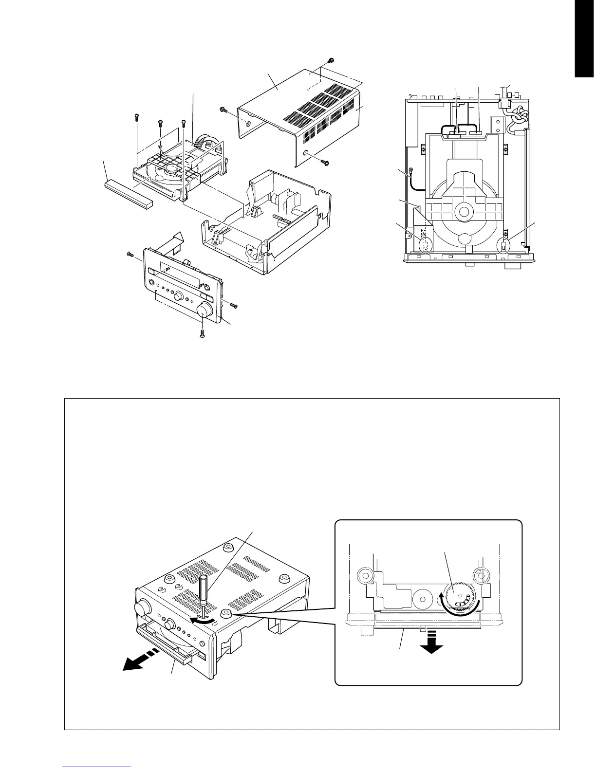 b. トレーが出てくるまで、ドライバーでローディングギア