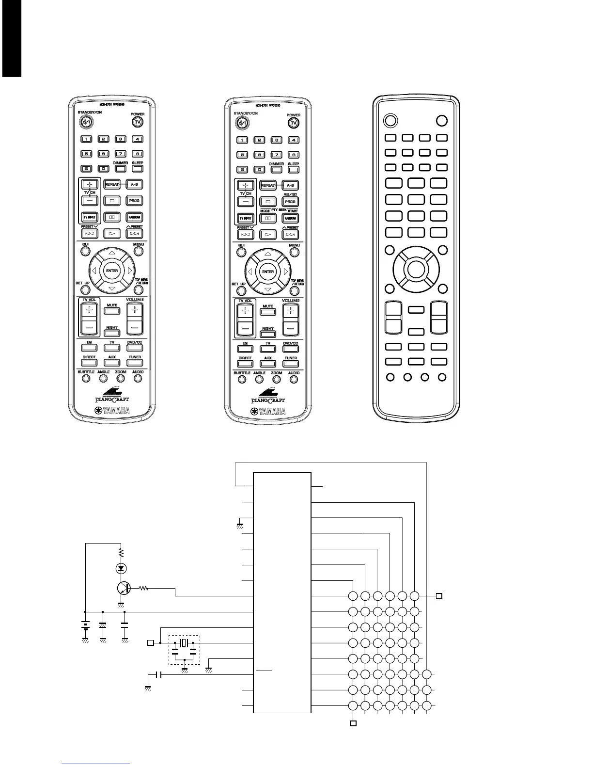 Yamaha RDX-E700 - Remote Control Layouts; U, C, T, K, A, L, V, J Models Remote; B, G Models Remote; Remote Control Key Number Layout