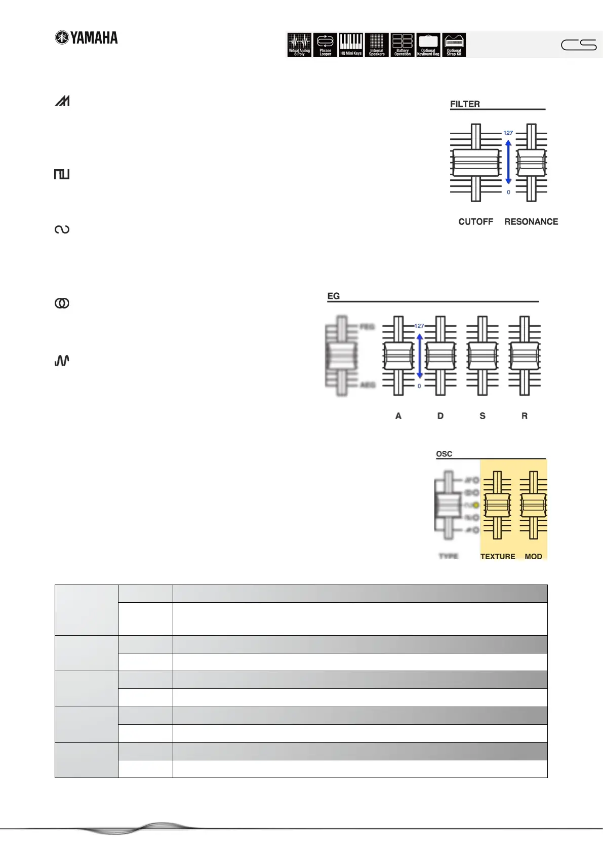 TEXTURE Changes the pitch and tone of the second Oscillator