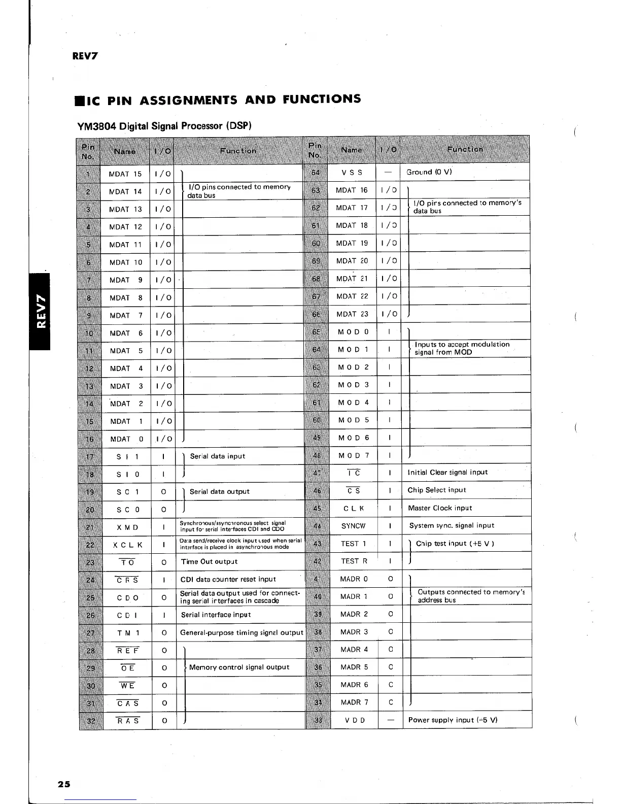 Yamaha REV7 - IC Pin Assignments and Functions; YM3804 Digital Signal Processor (DSP)