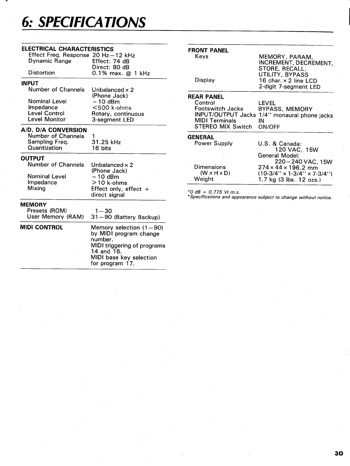 Yamaha REX50 - ROM CONTENTS AND PARAMETERS; Preset ROM Programs and Parameters