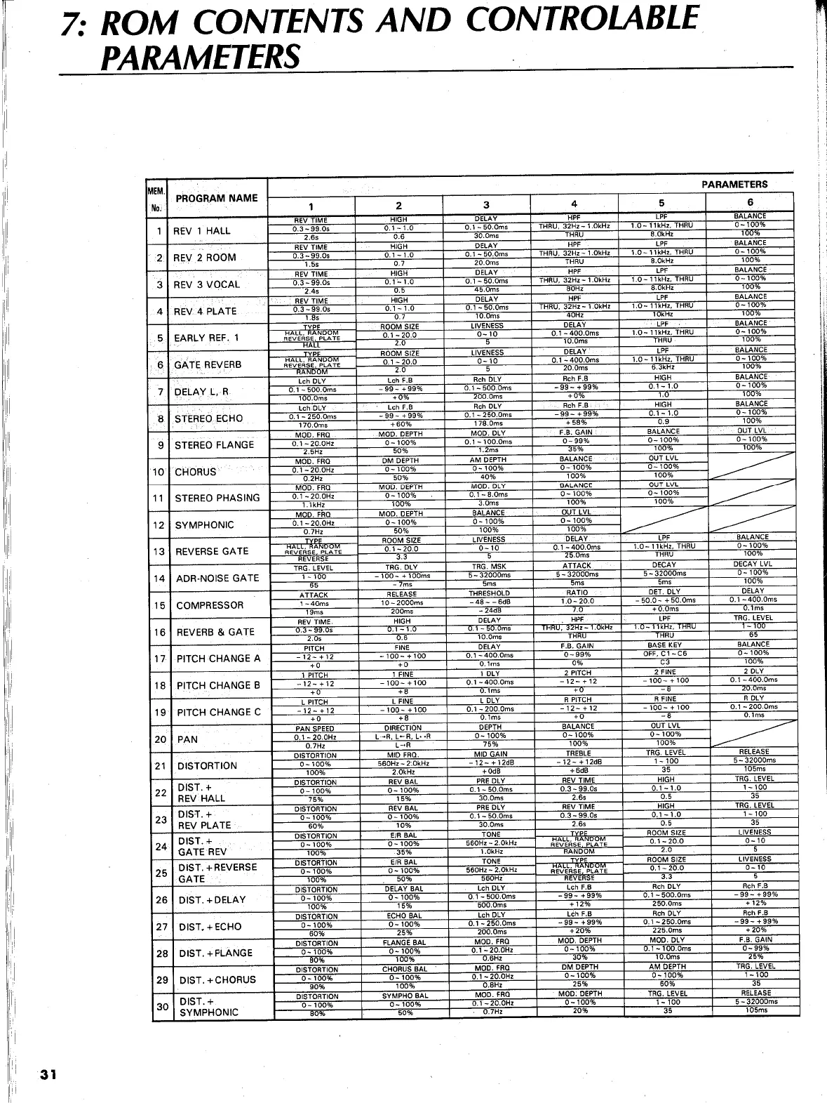 Yamaha REX50 - ROM Contents and Controlable Parameters