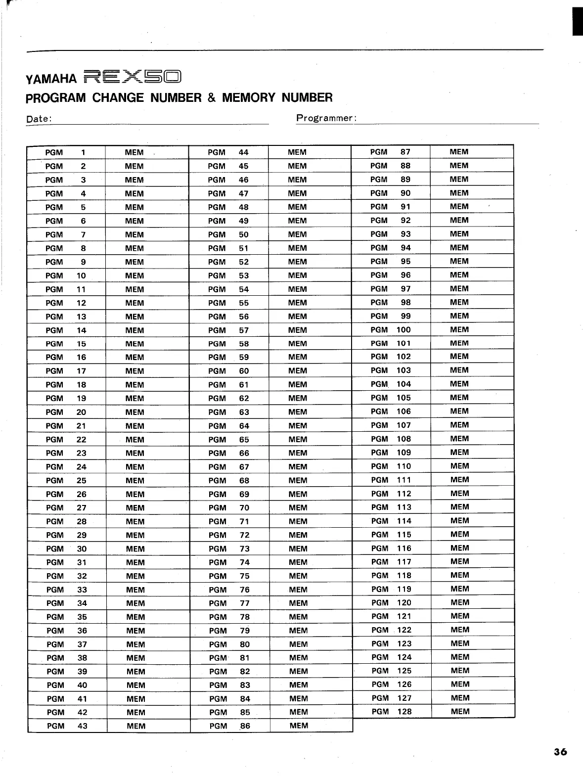 Yamaha REX50 - Program Change Number & Memory Number