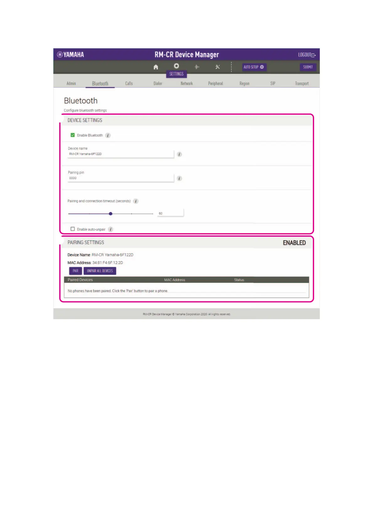 • Allows you to put the unit in pairing standby mode by clicking the [PAIR] button.