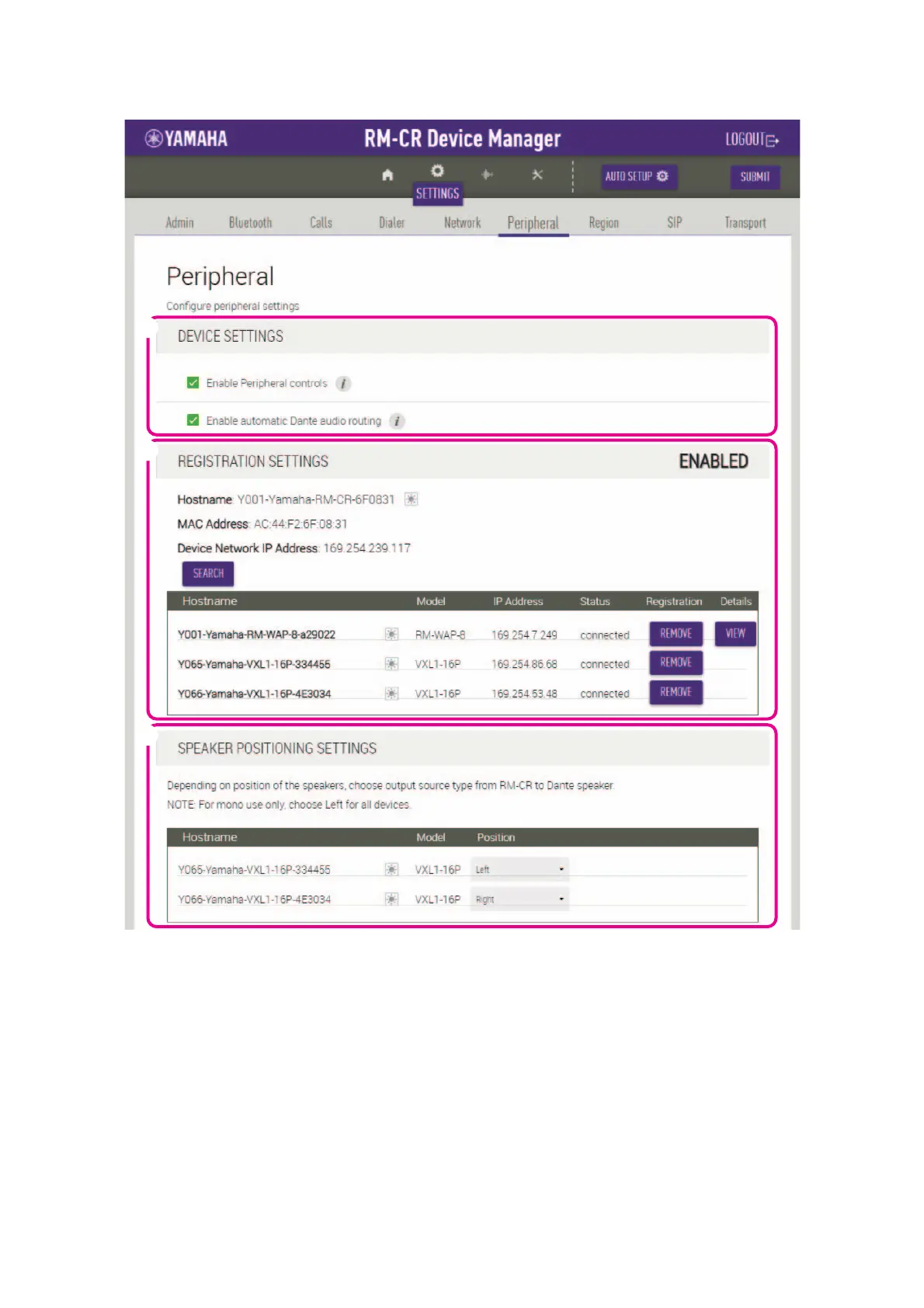 • Allows you to open the Web GUI “Peripheral Detail” for the corresponding peripheral device by clicking the [VIEW] button.