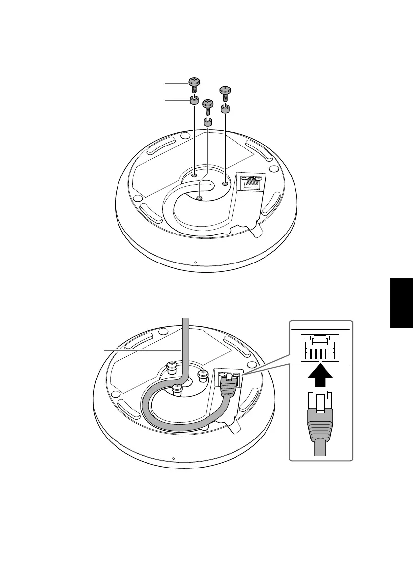 3. Rimuovere il tappo dal fondo dell’unità e inserire tre viti di montaggio