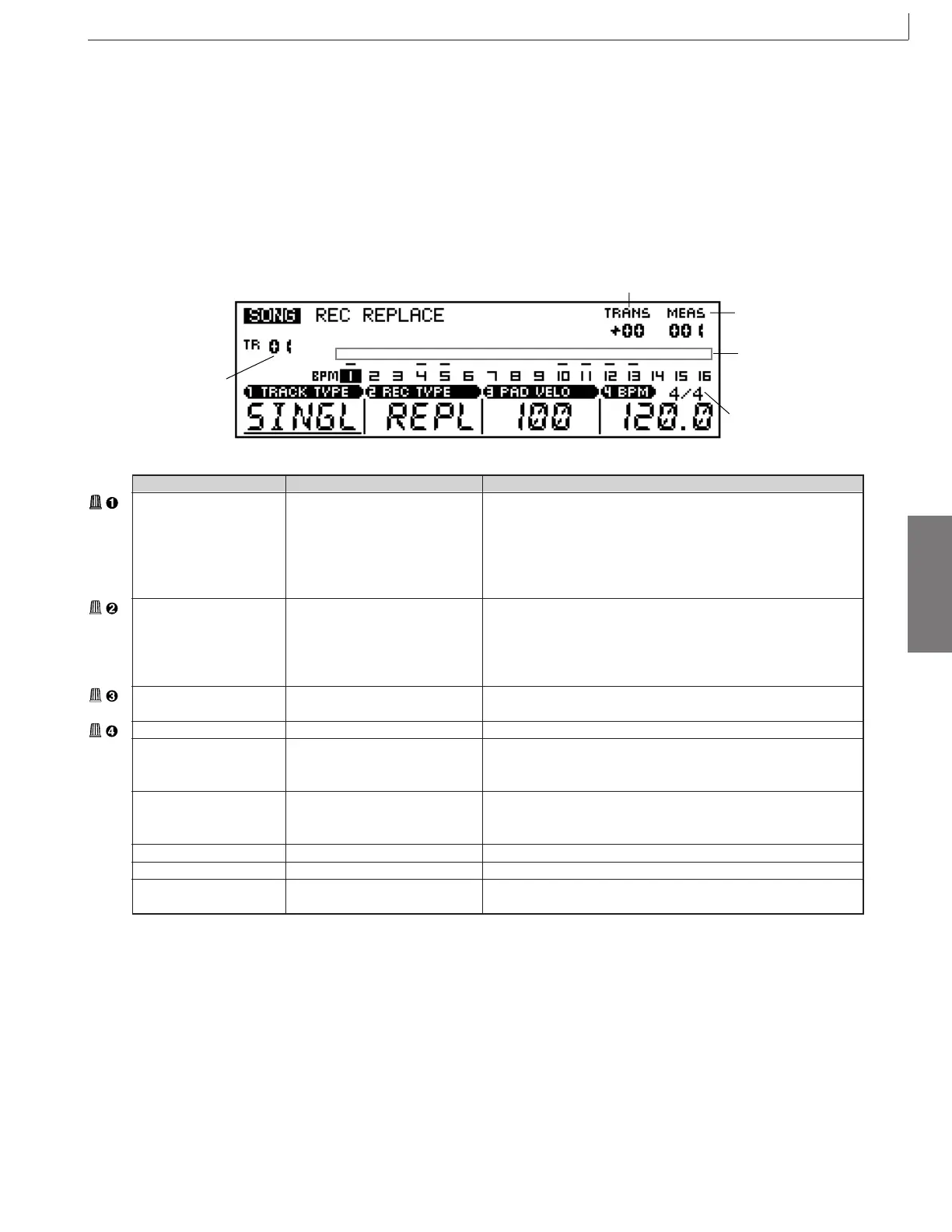 Refer to the PATTERN mode recording instructions (page 49) for details on recording using the REPLACE, OVERDUB,