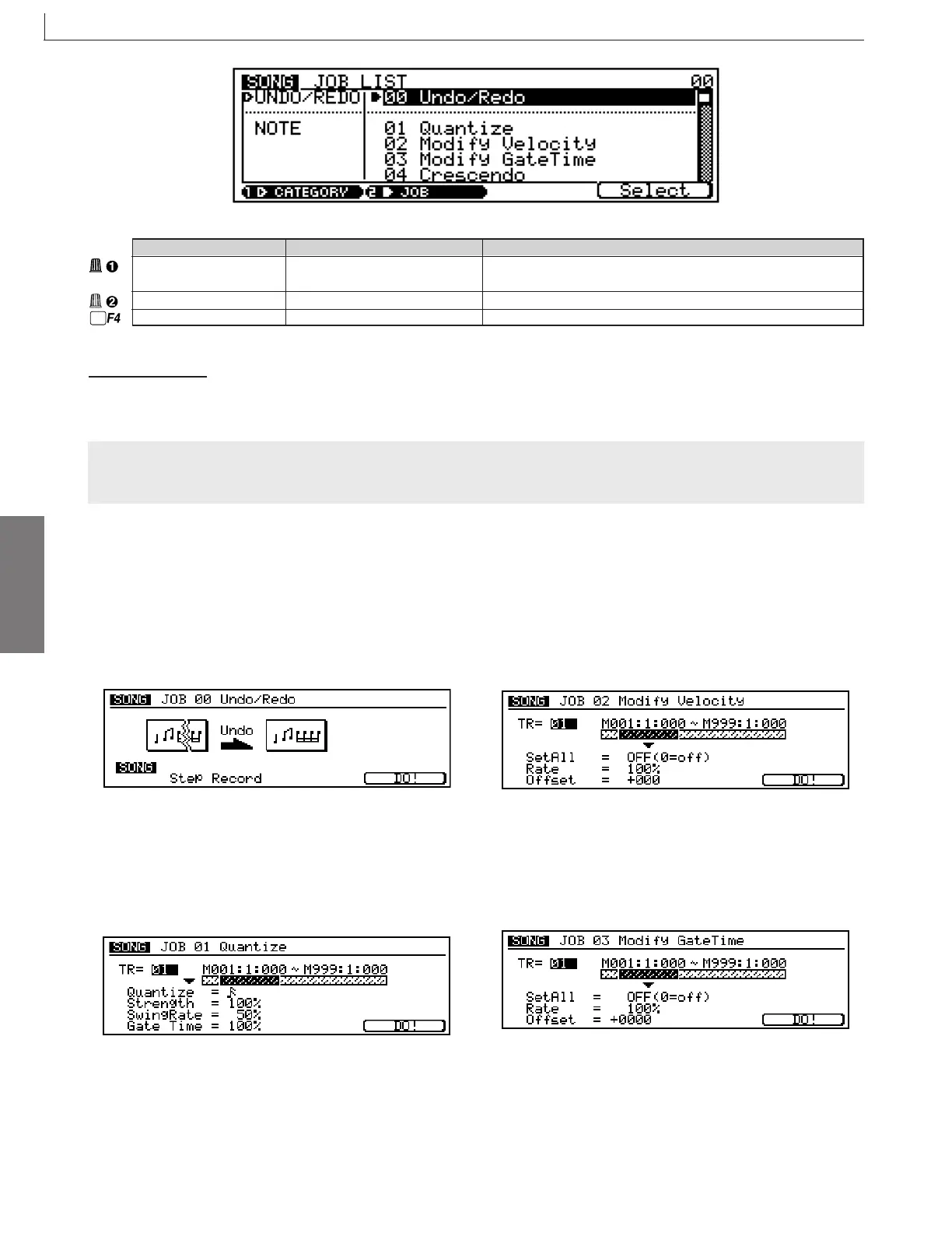 Category UNDO/REDO, NOTE, EVENT, Selects the category.