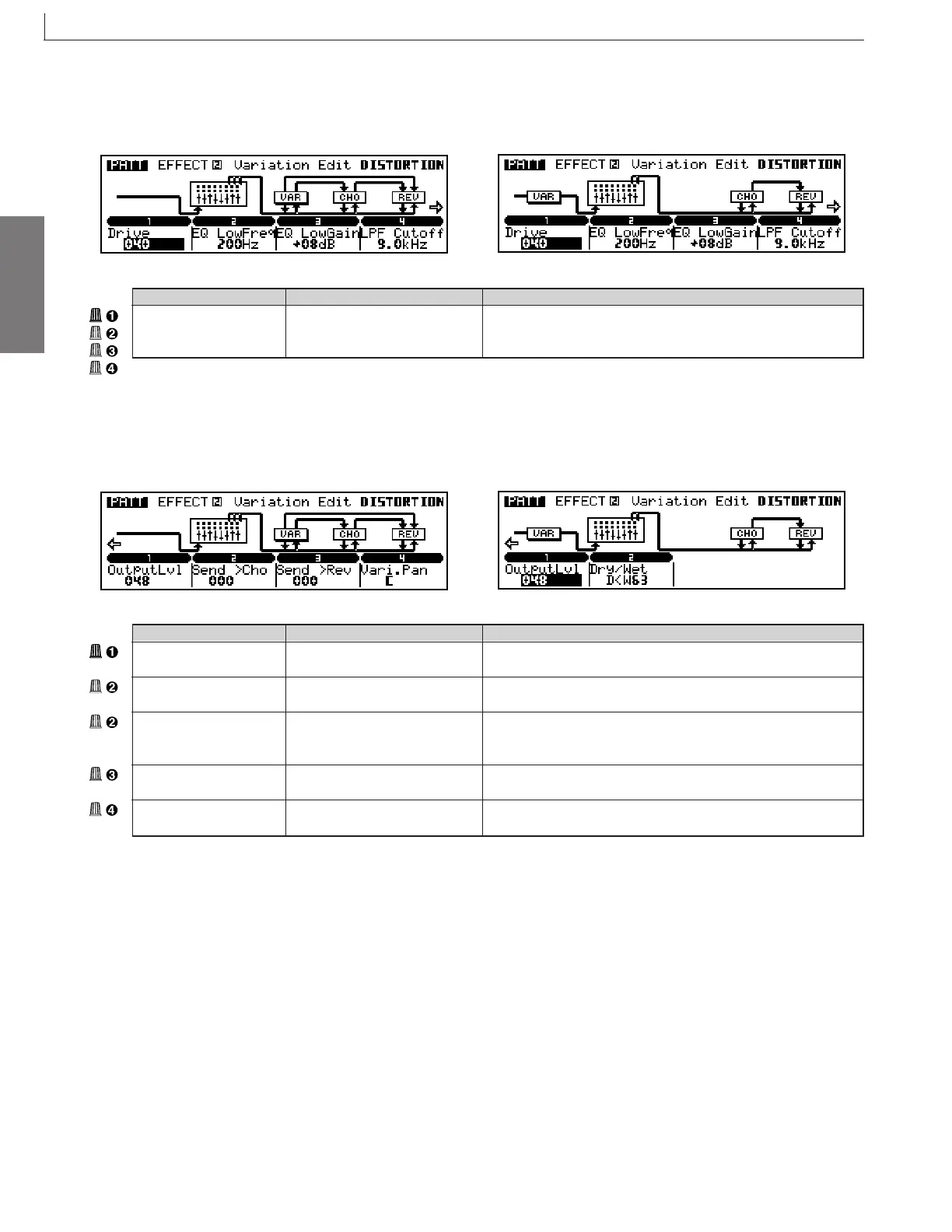 Send Variation to Chorus 000 ... 127 Sets level on bus from variation effect block to chorus block.