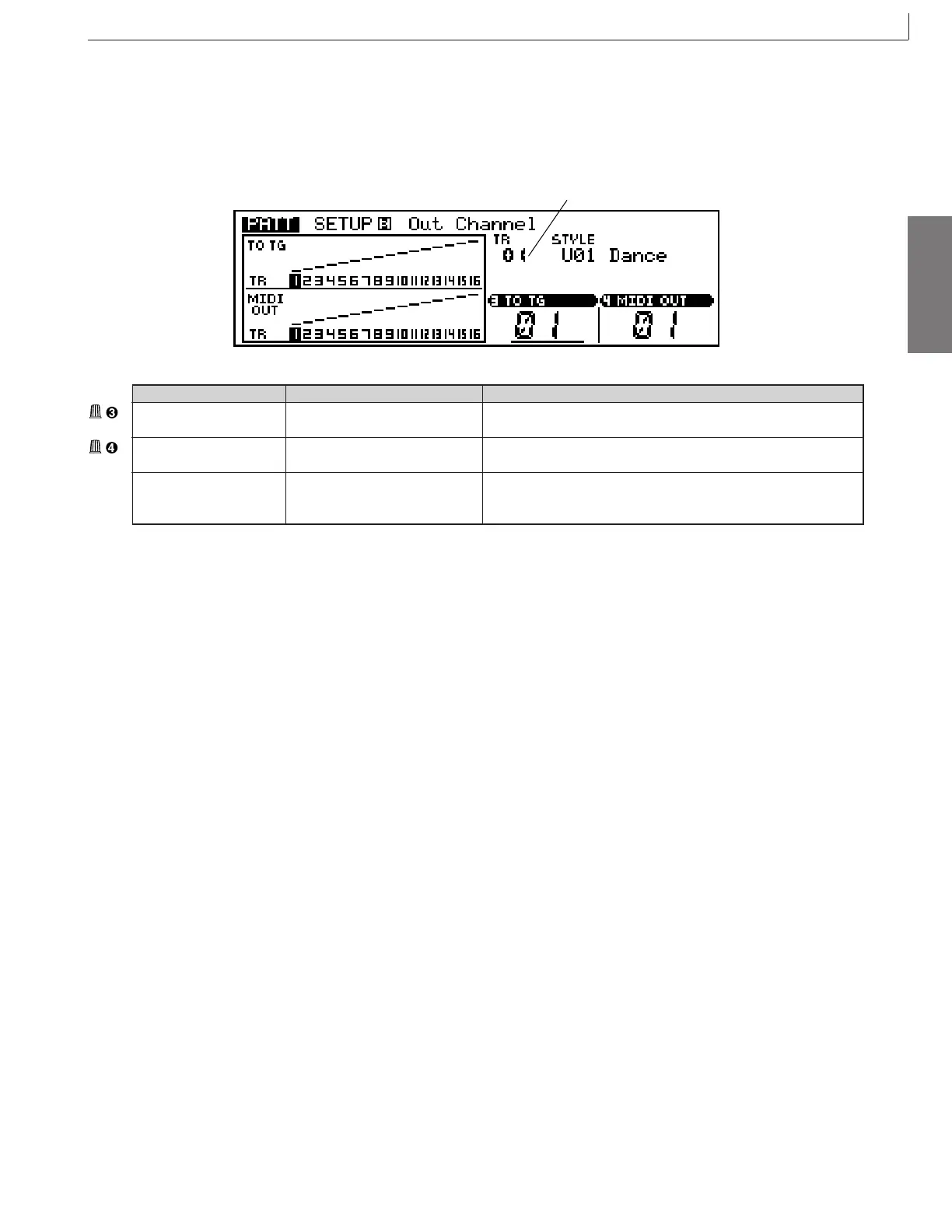TO TG channel setup OFF, 01 ... 16 Sets up channel transmission to the tone generator block.