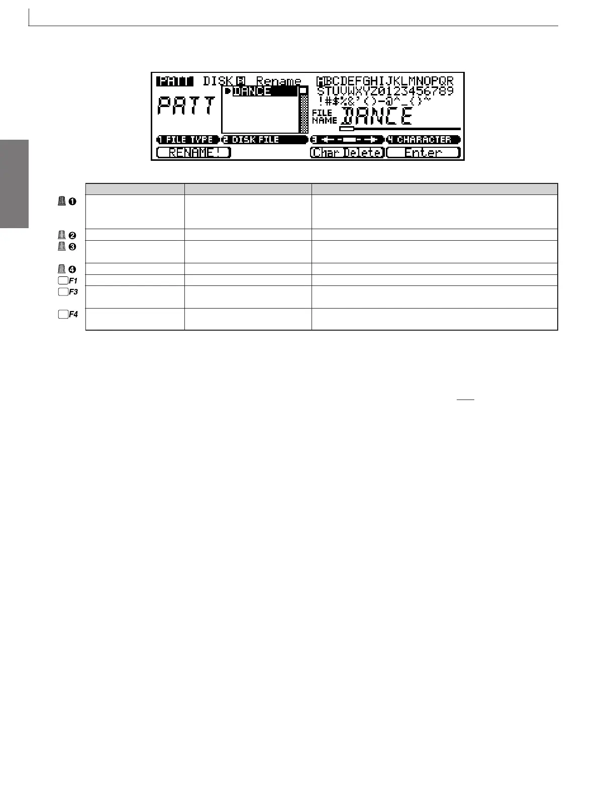 4 Enter a new file name. Use Display Knobs 3 and 4 to