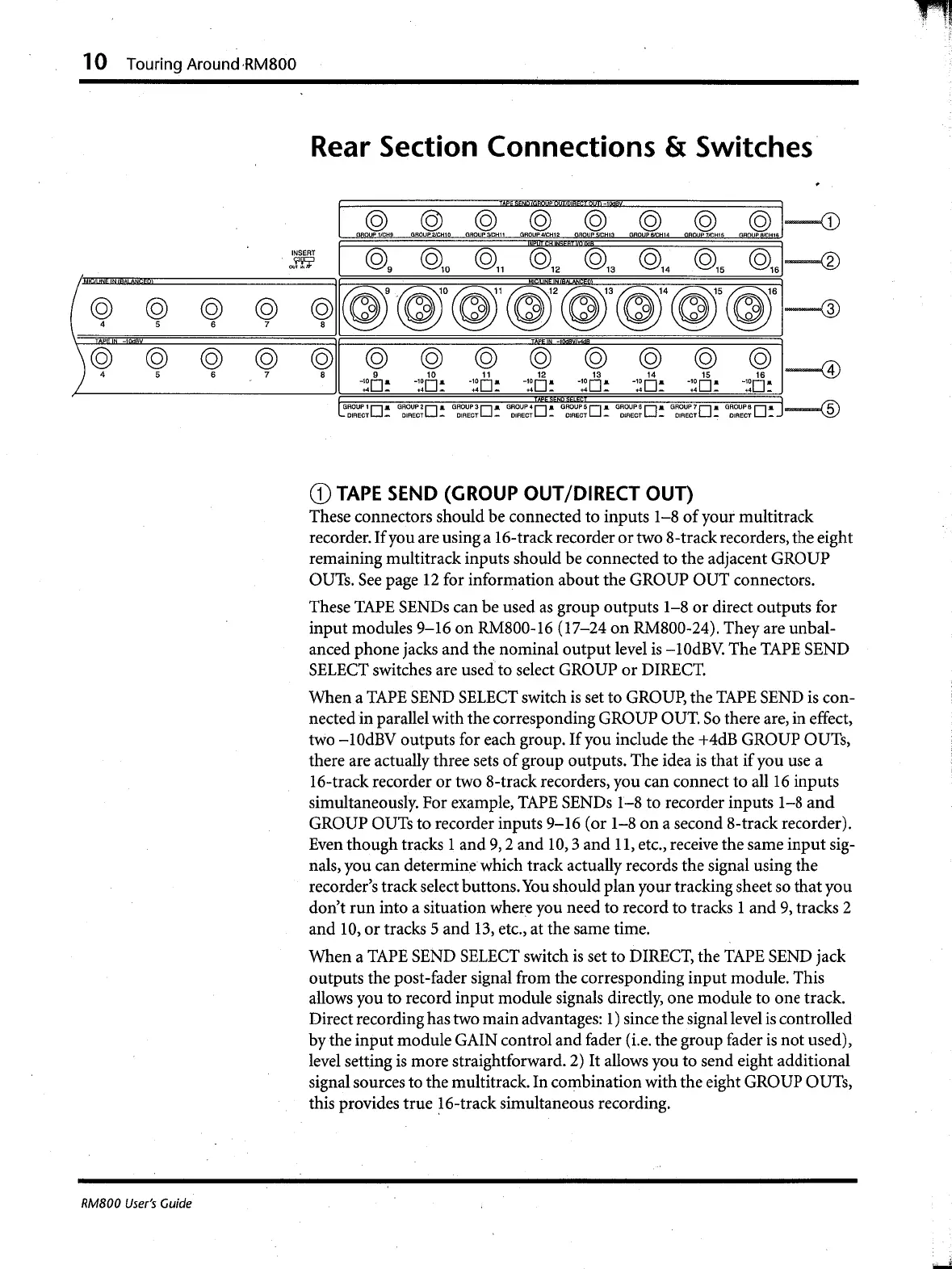 Yamaha RM800 - Rear Section Connections & Switches; Tape Send