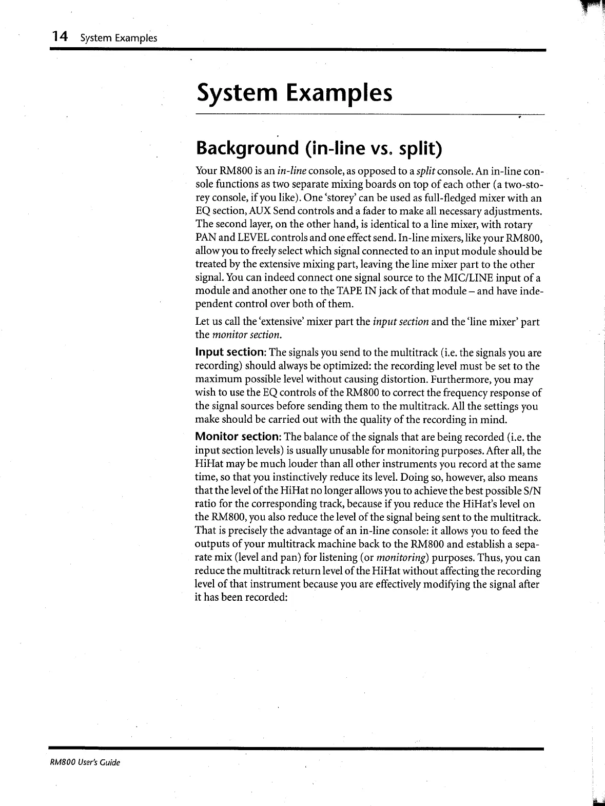 Yamaha RM800 - System Examples; Background; Input Section; Monitor Section