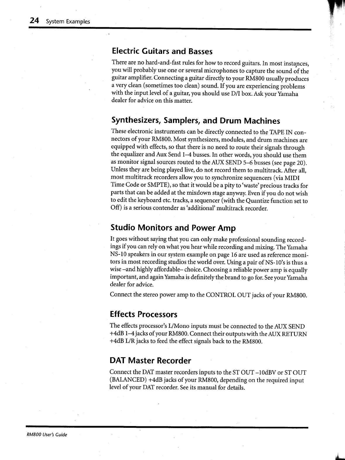 Yamaha RM800 - Electric Guitars and Basses; Synthesizers, Samplers and Drum Machines; Studio Monitors and Power Amp; Effects Processors