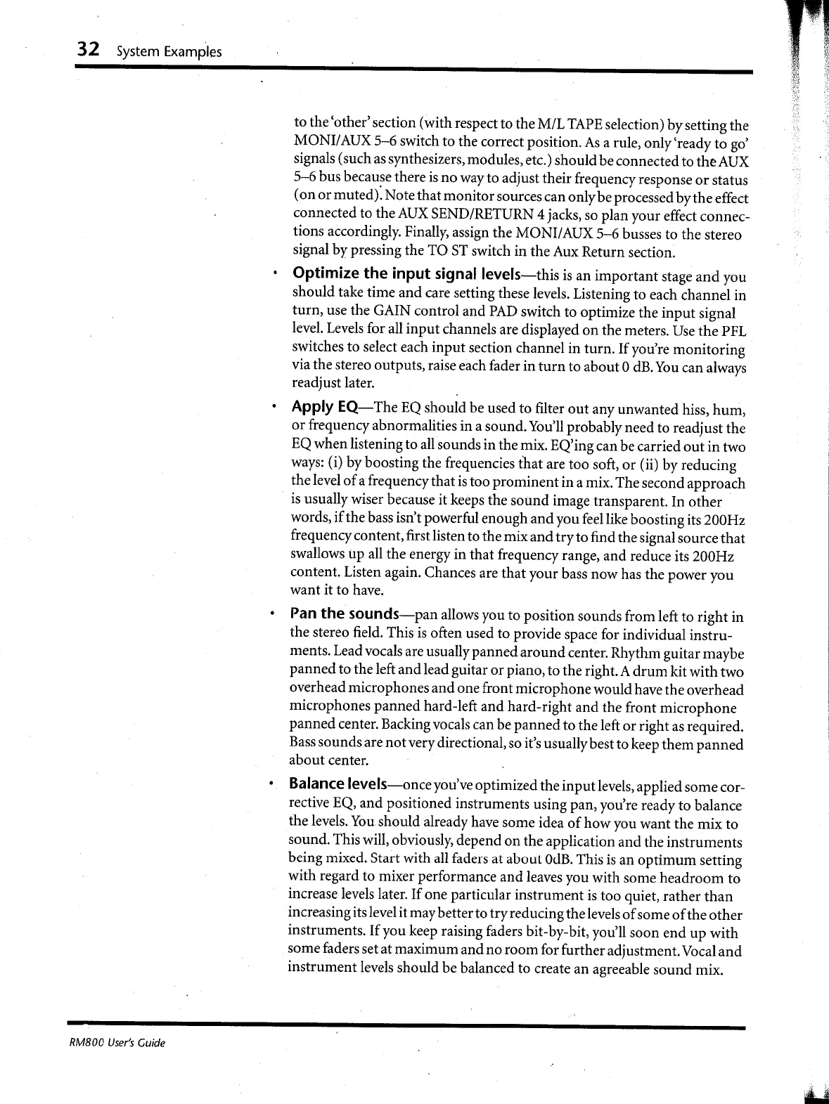 Yamaha RM800 - Optimize the Input Signal Levels; Apply EQ; Pan the Sounds; Balance Levels