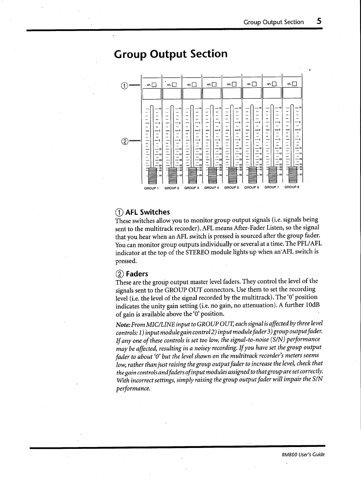 Yamaha RM800 - Group Output Section; AFL Switches; Faders
