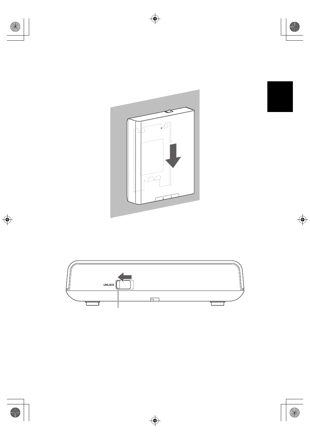 Entriegelungsschalter UNLOCK an der Rückseite (Oberkante in der obigen
