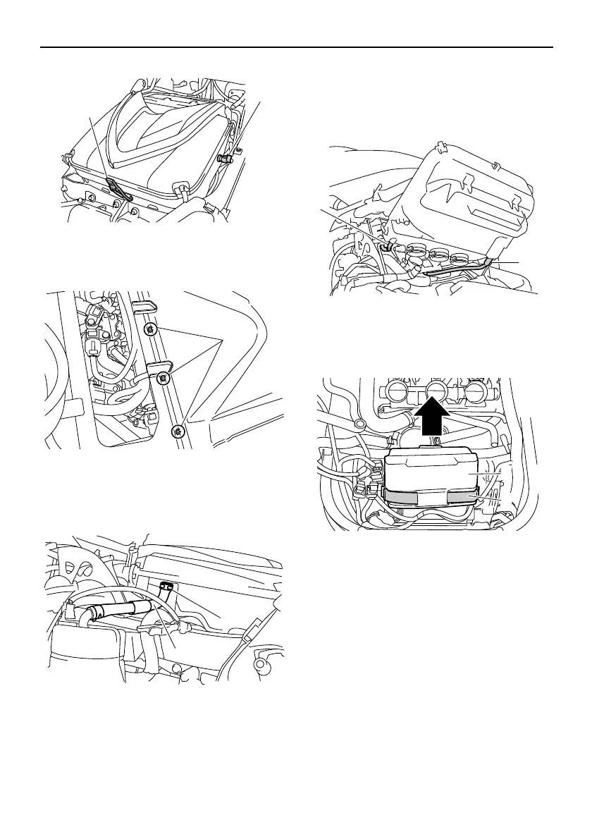 7. Lift up the air filter case, disconnect the