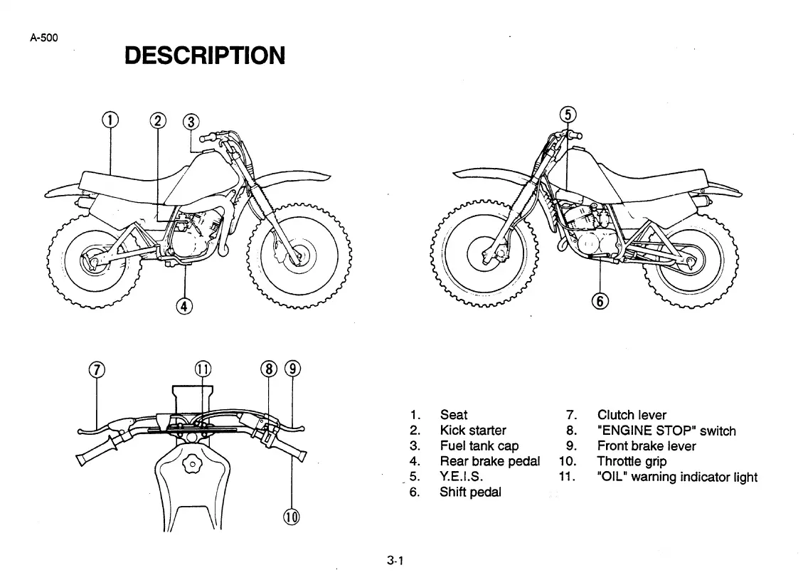 Yamaha RT180K - Description of Motorcycle Components; Component Identification List
