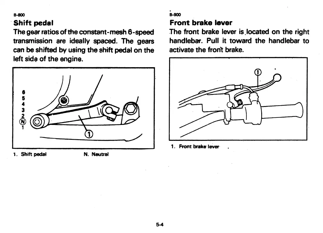 Yamaha RT180K - Shift Pedal Operation; Front Brake Lever Operation