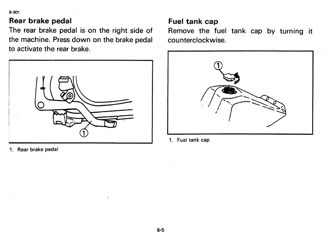 Yamaha RT180K - Rear Brake Pedal Operation; Fuel Tank Cap
