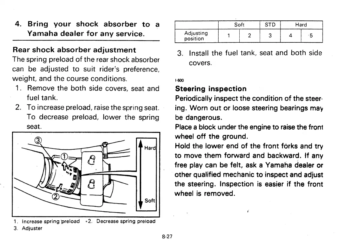Yamaha RT180K - Rear Suspension Lubrication; Rear Shock Absorber Information; Rear Shock Absorber Adjustment; Steering Inspection