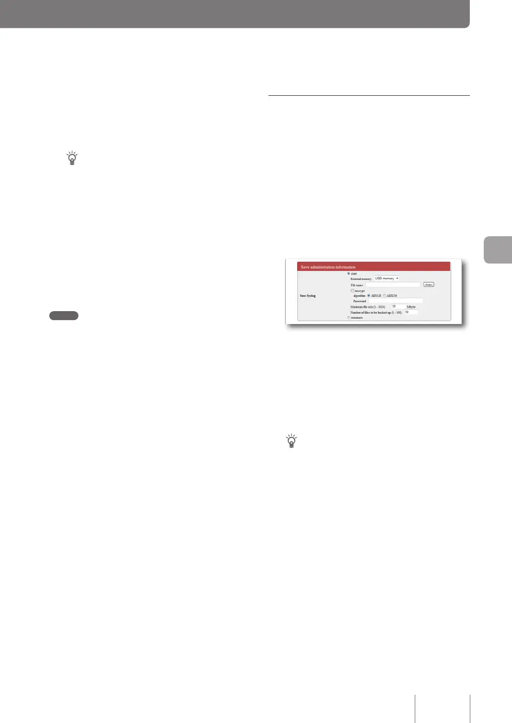 Please refer to “Notes on the log to be saved” (page 136)