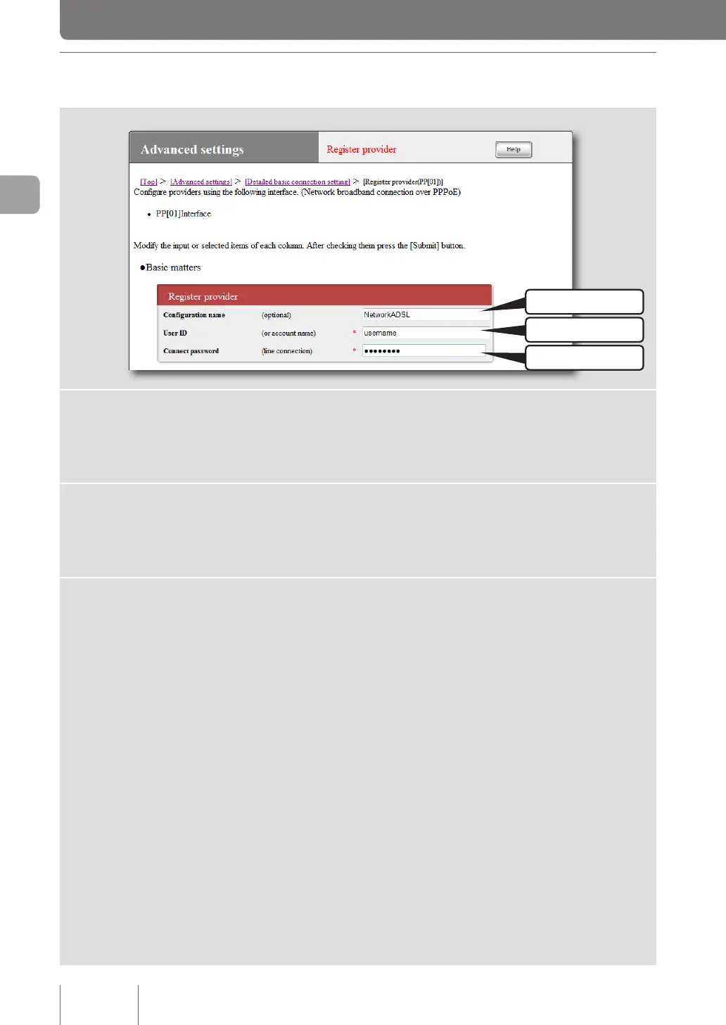 Enter the connection user ID specied by the provider. Be sure to check the relevant document