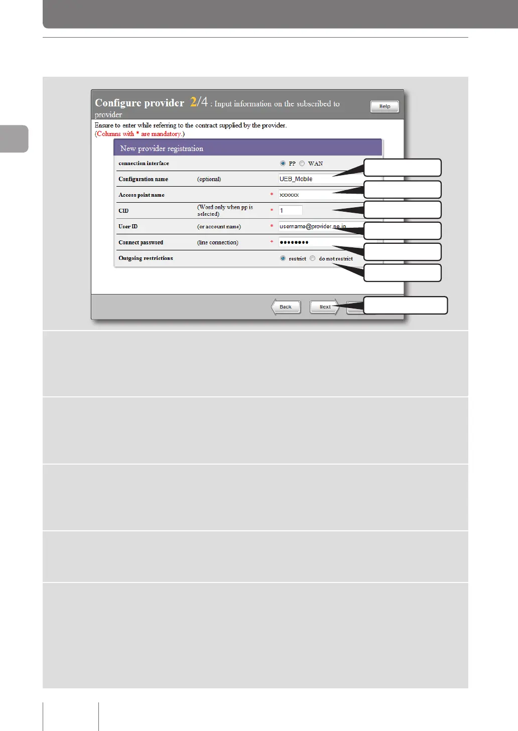 Enter the user ID provided by your provider. Be sure to check the relevant document when entering it.