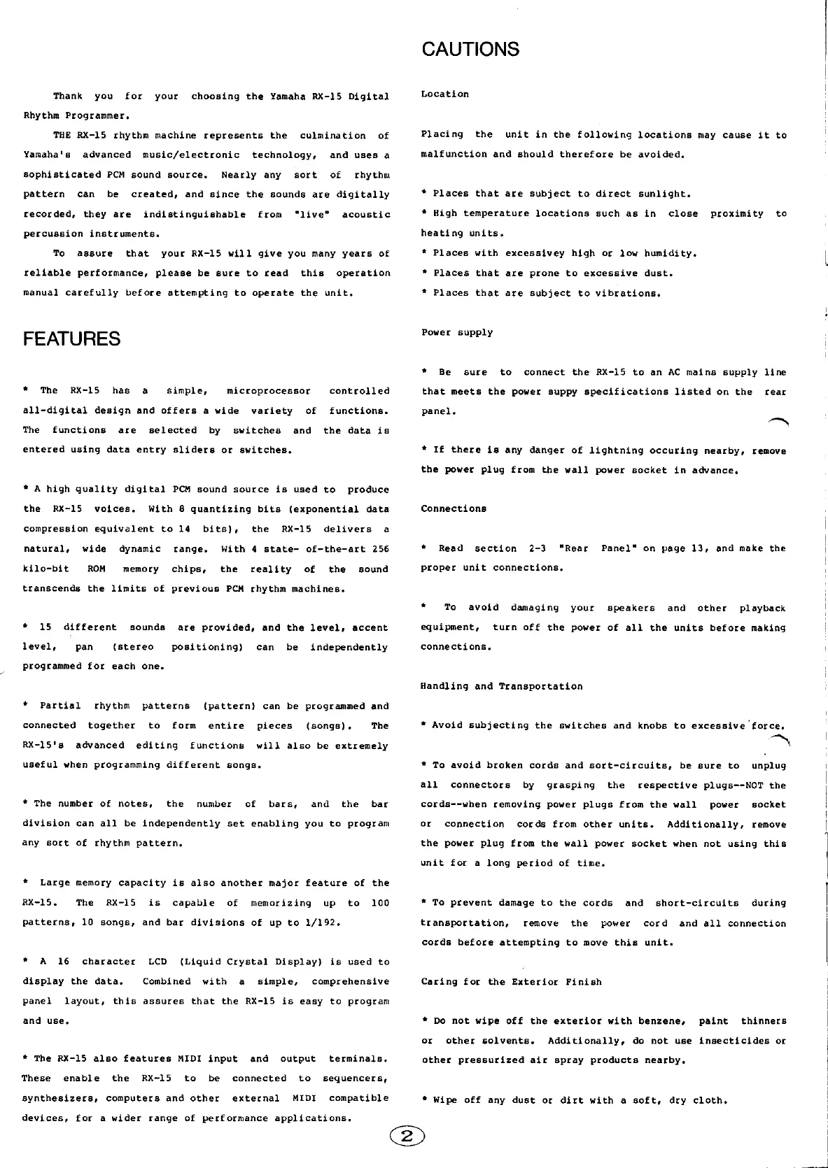 Yamaha RX-15 - CAUTIONS; General Precautions; Specific Warnings