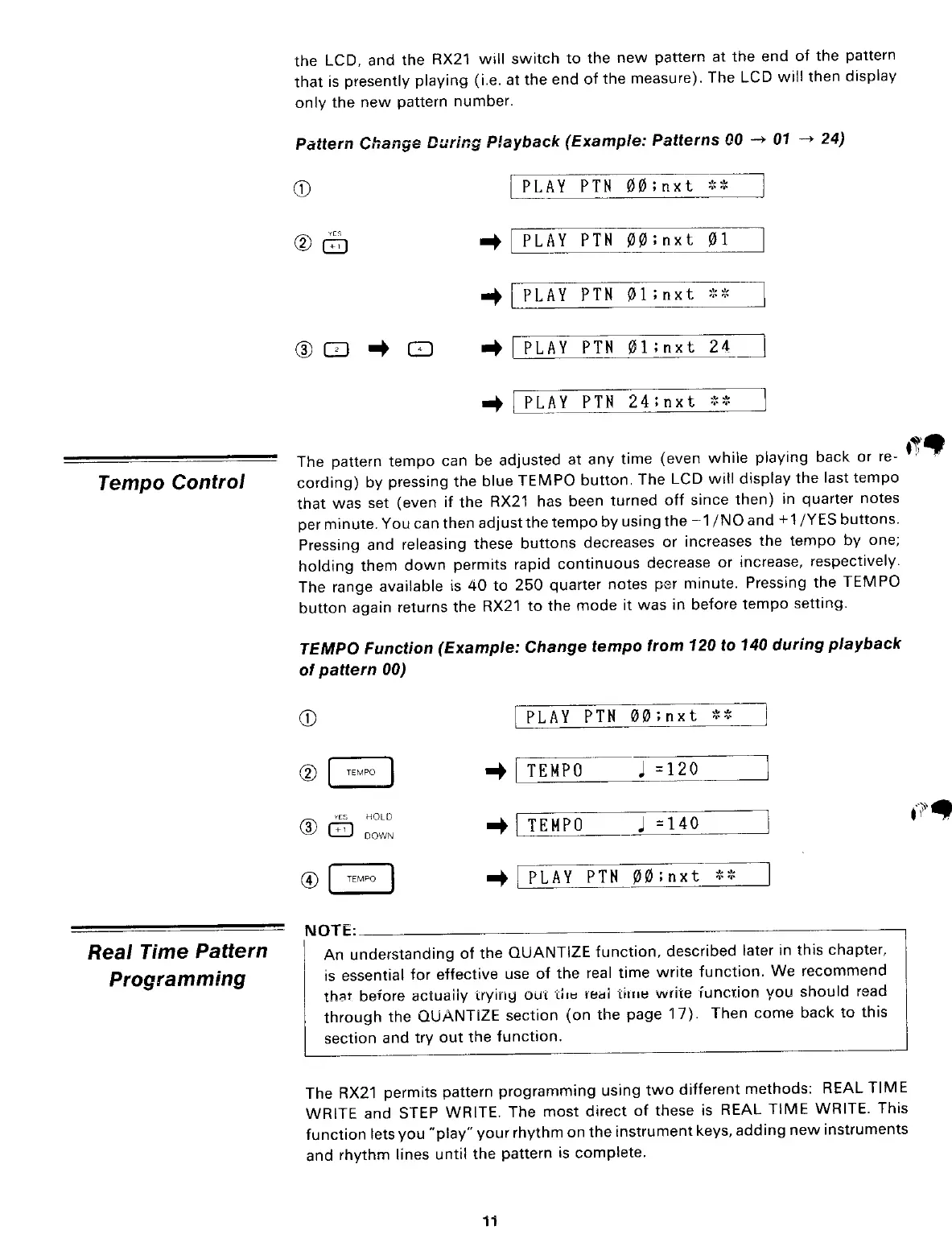 Yamaha RX-21 - Tempo Control; Real Time Pattern Programming; Tempo Function