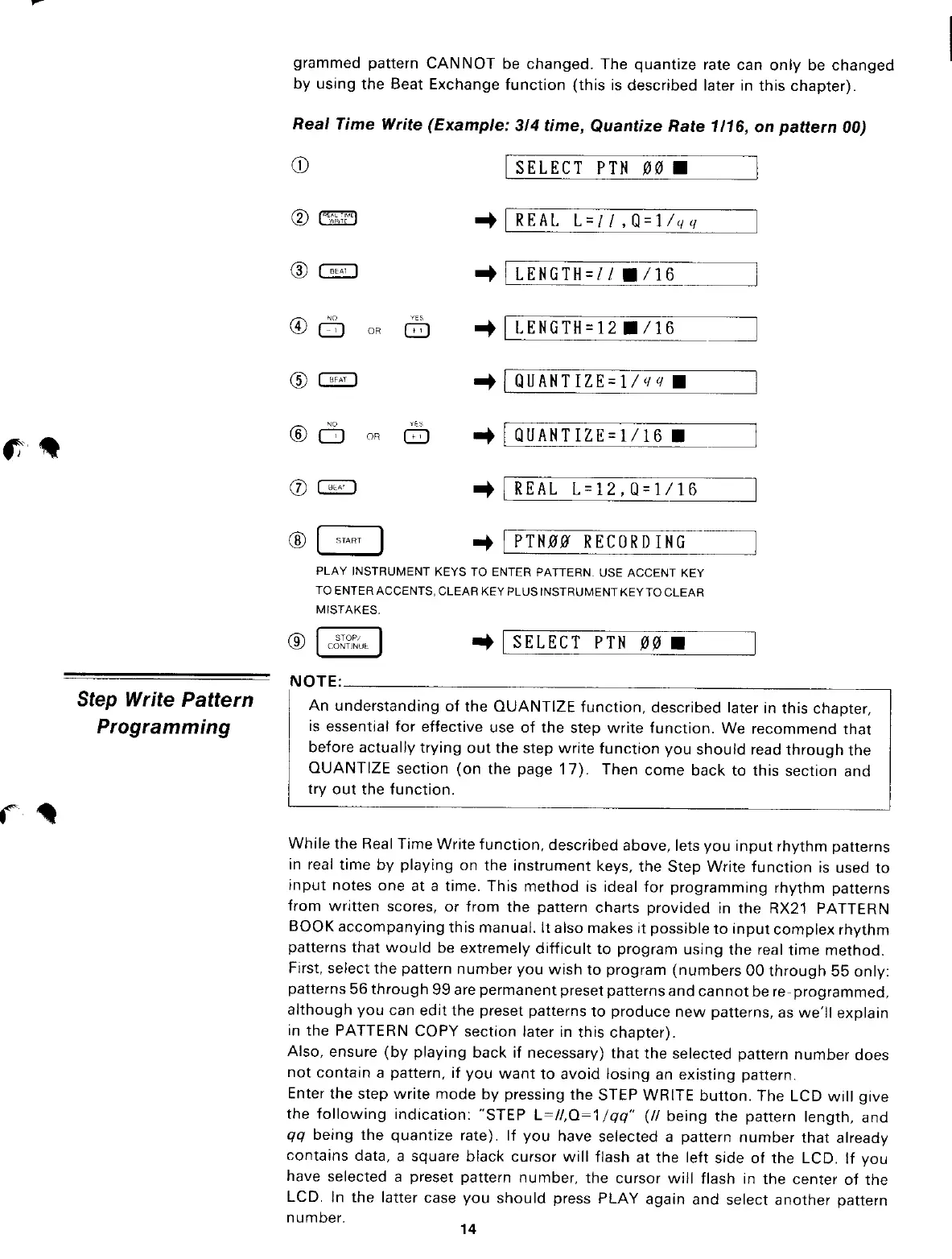 Yamaha RX-21 - Step Write Pattern Programming; Real Time Write