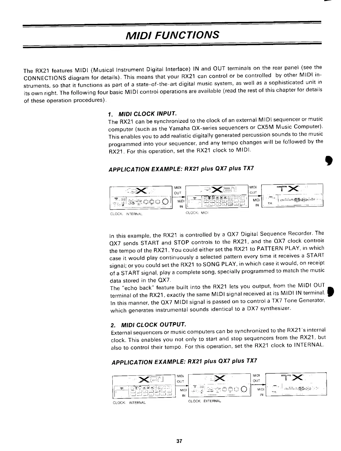 Yamaha RX-21 - MIDI Functions; MIDI Clock Input; MIDI Clock Output