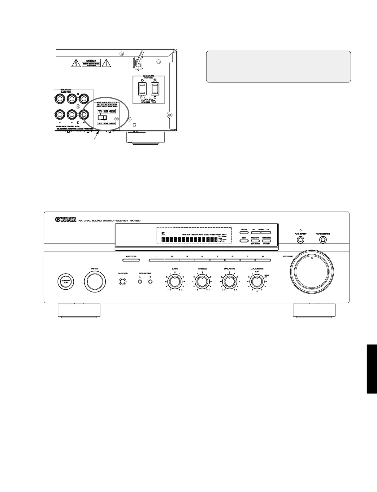 Yamaha RX-397 - Impedance Selector; Impedance Selector Warning; Front Panel Overview
