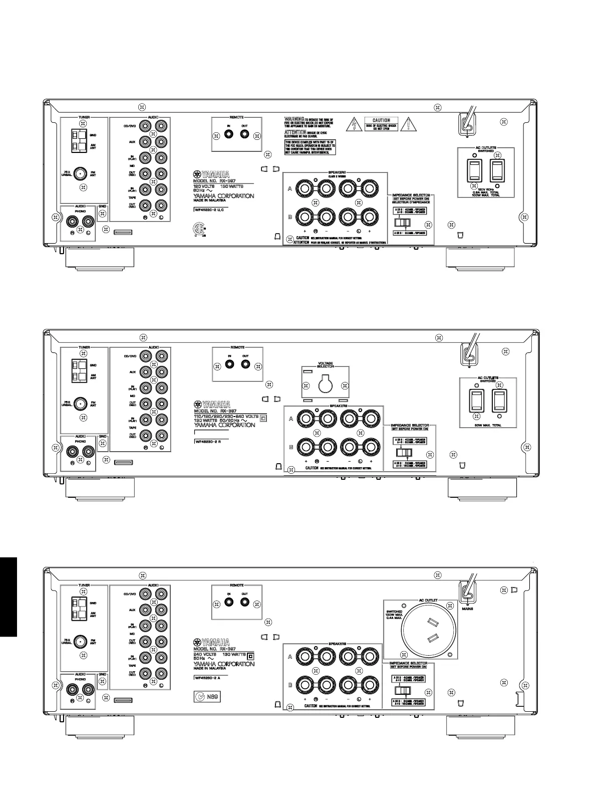 Yamaha RX-397 - Rear Panel Configurations; U, C Models Rear Panel; R Model Rear Panel; A Model Rear Panel