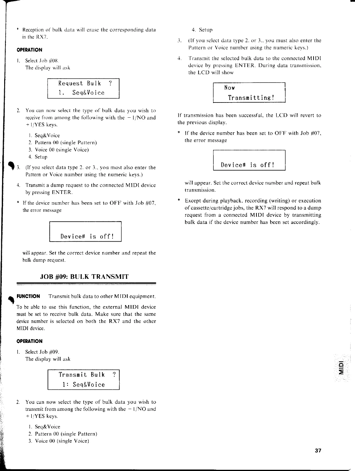 Yamaha RX-7 - Cassette;Cartridge Data Management; Cassette;Cartridge Mode Overview; Cassette;Cartridge Jobs Table