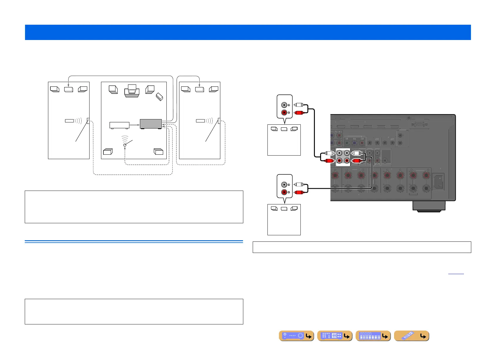 Connect the speakers in the second zone and/or third zone to the EXTRA SP jacks directly (☞p. 21).