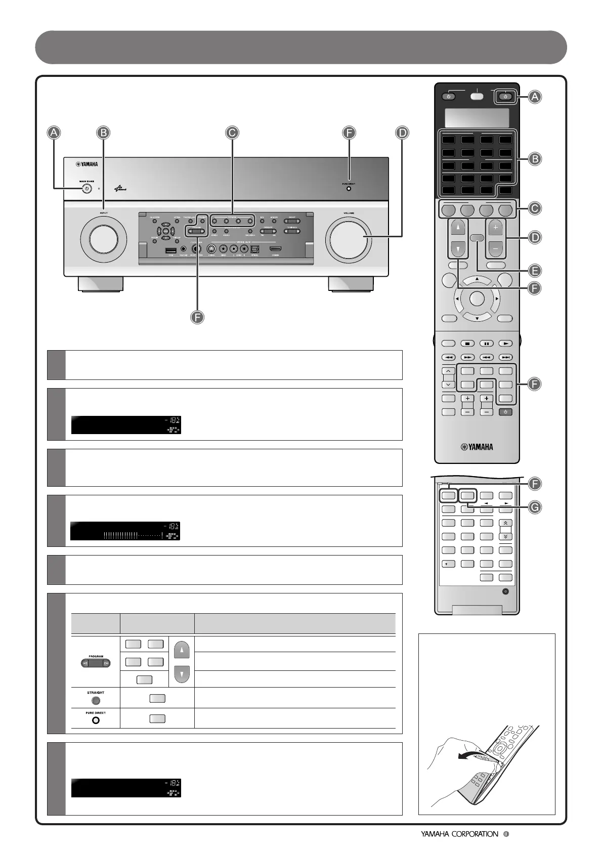 You can switch the settings such as input sources and sound eld programs with a single key. Refer to