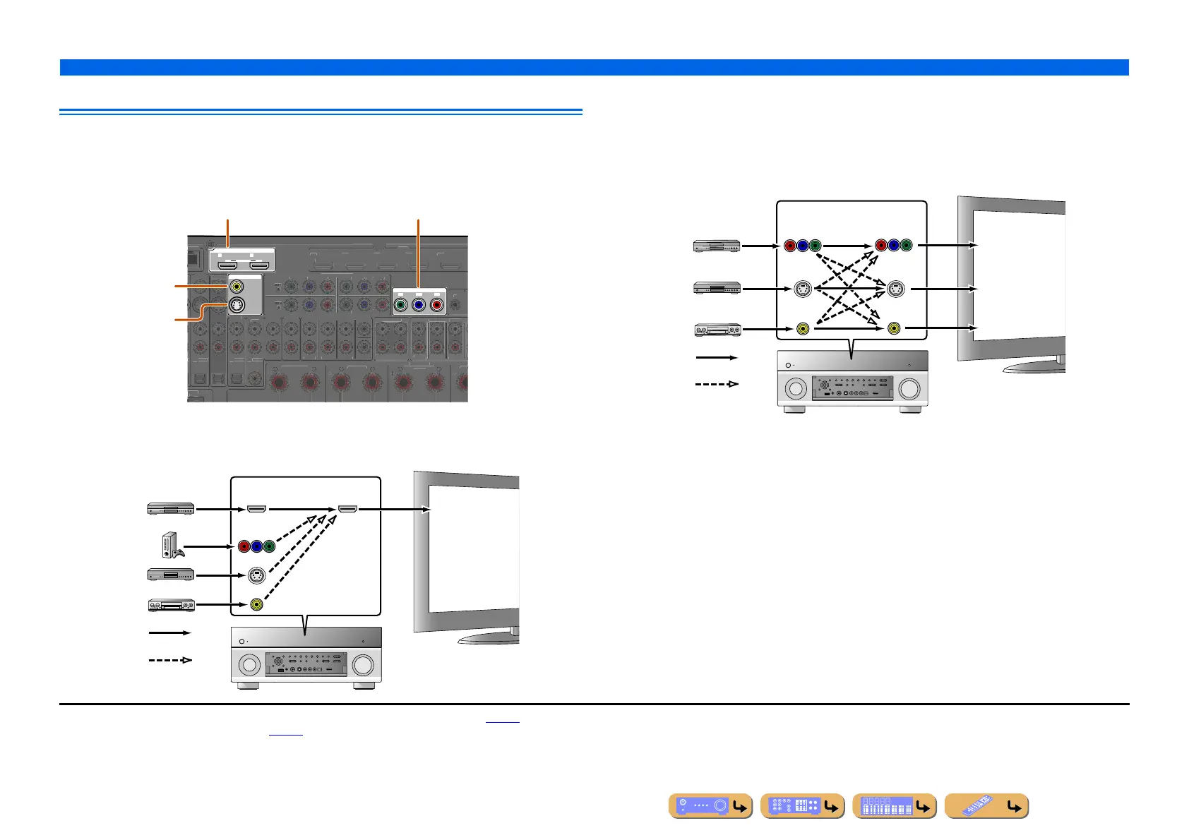HDMI OUT 1-2, COMPONENT VIDEO, S-VIDEO or VIDEO. Select the proper connection