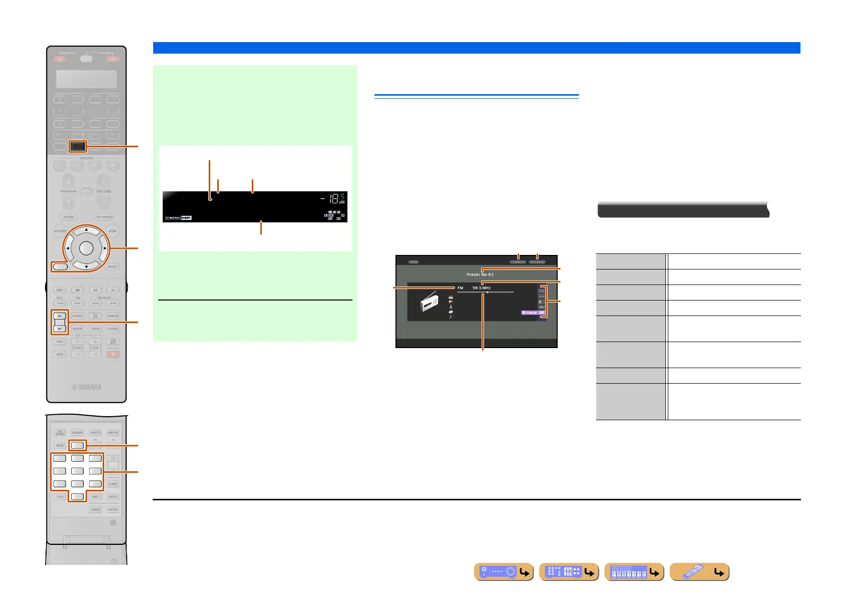 menu displayed on the TV screen. Various FM/AM tuner