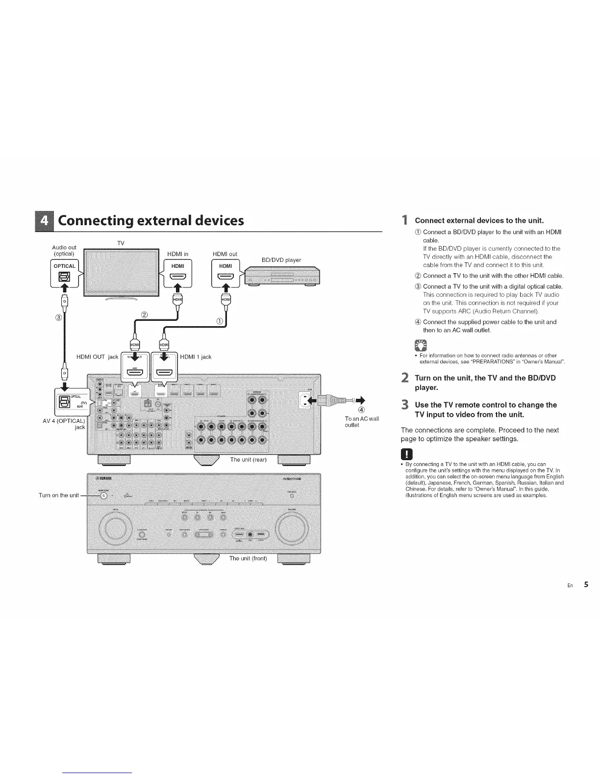 (_ Connect a BD/DVD player to the unit with an HDMI