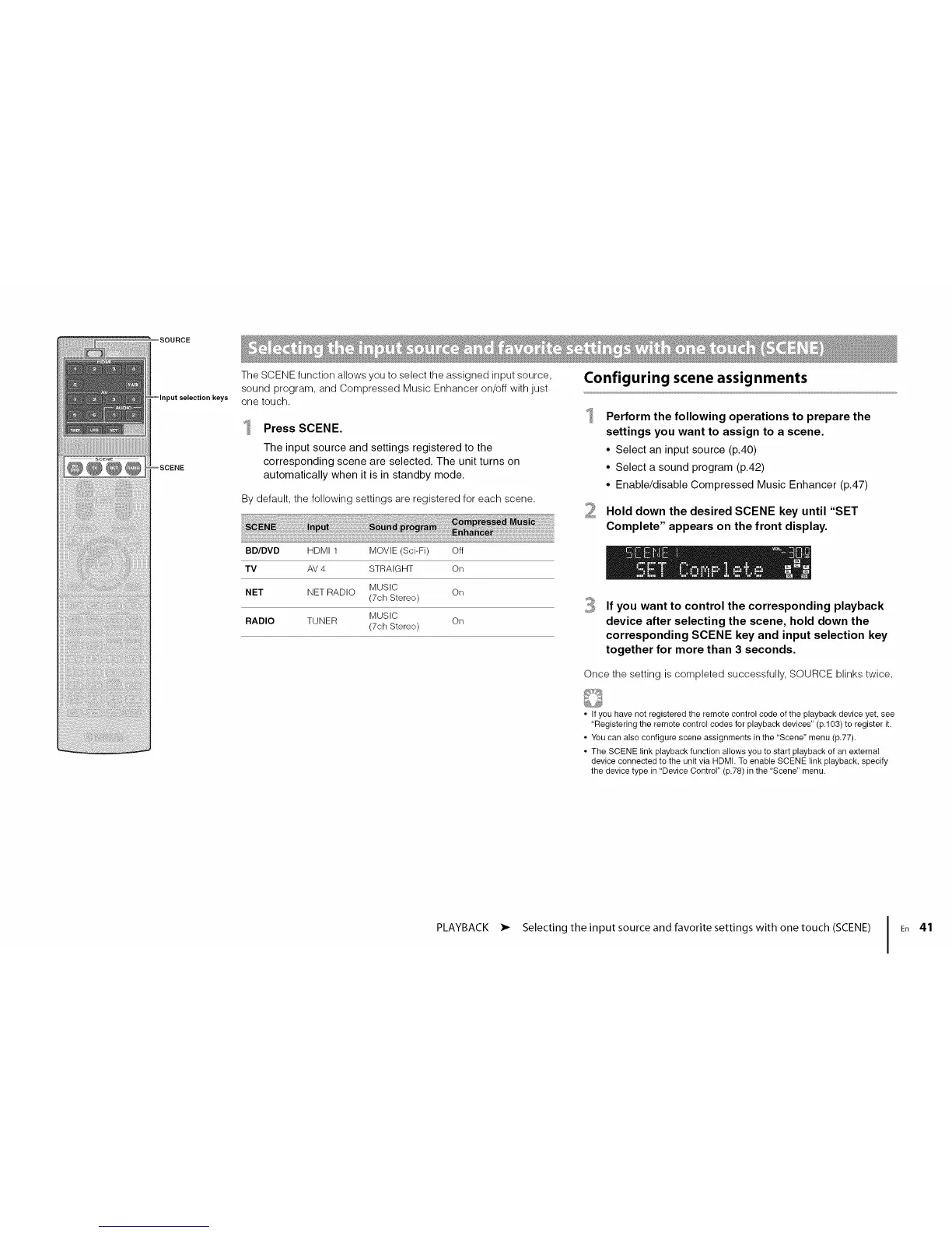 device connected to the unit via HDMh To enable SCENE link playback, specify