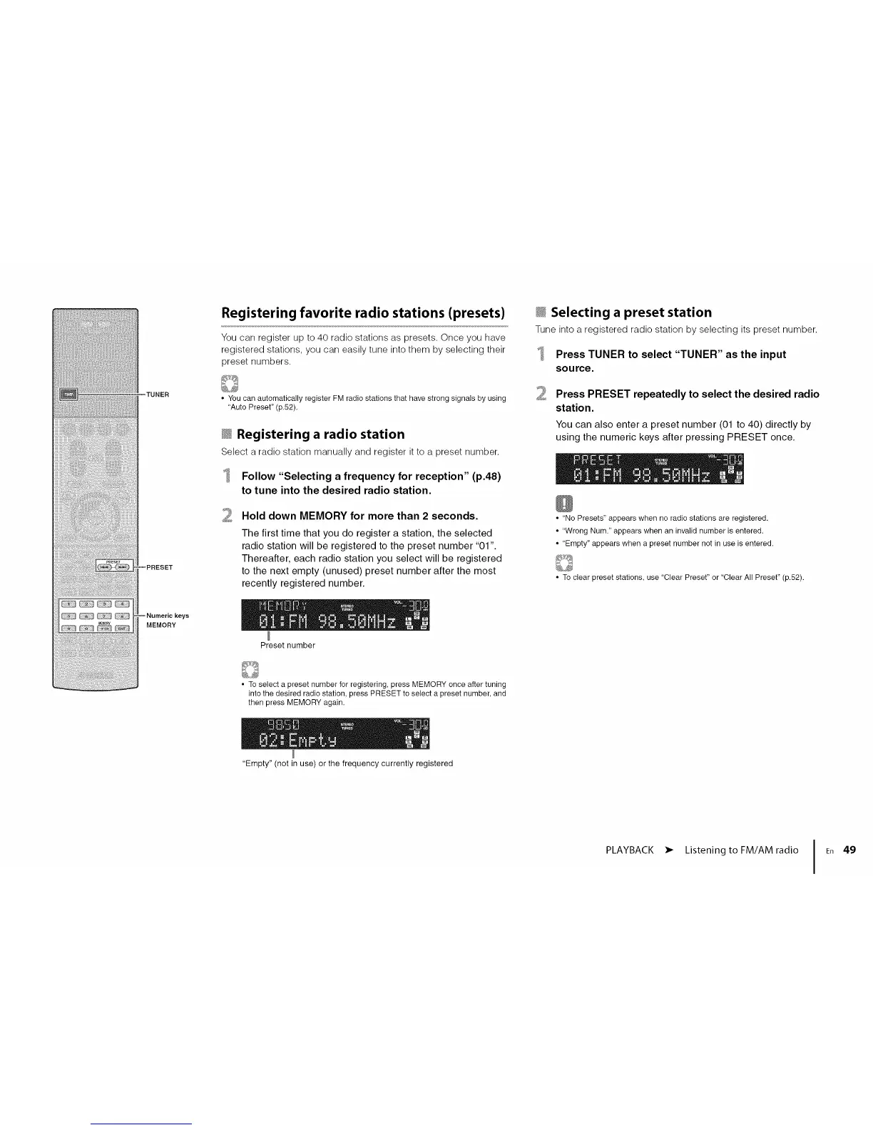 PLAYBACK • Listening to FM/AM radio I En 49