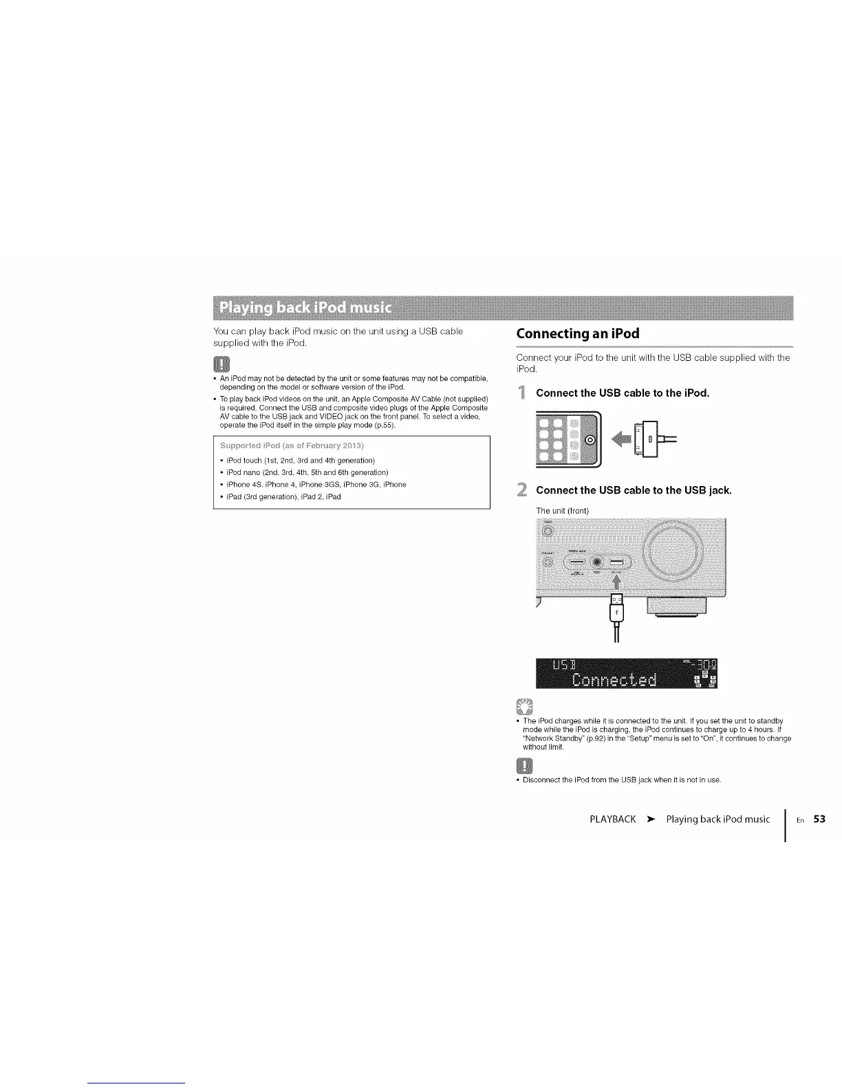 PLAYBACK • Playing backiPod music I En 53