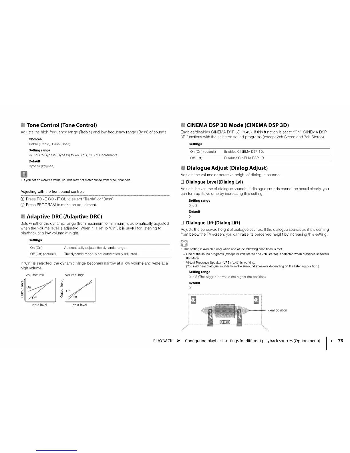 If "On" is selected, the dynamic range becomes narrow at a low volume and wide at a