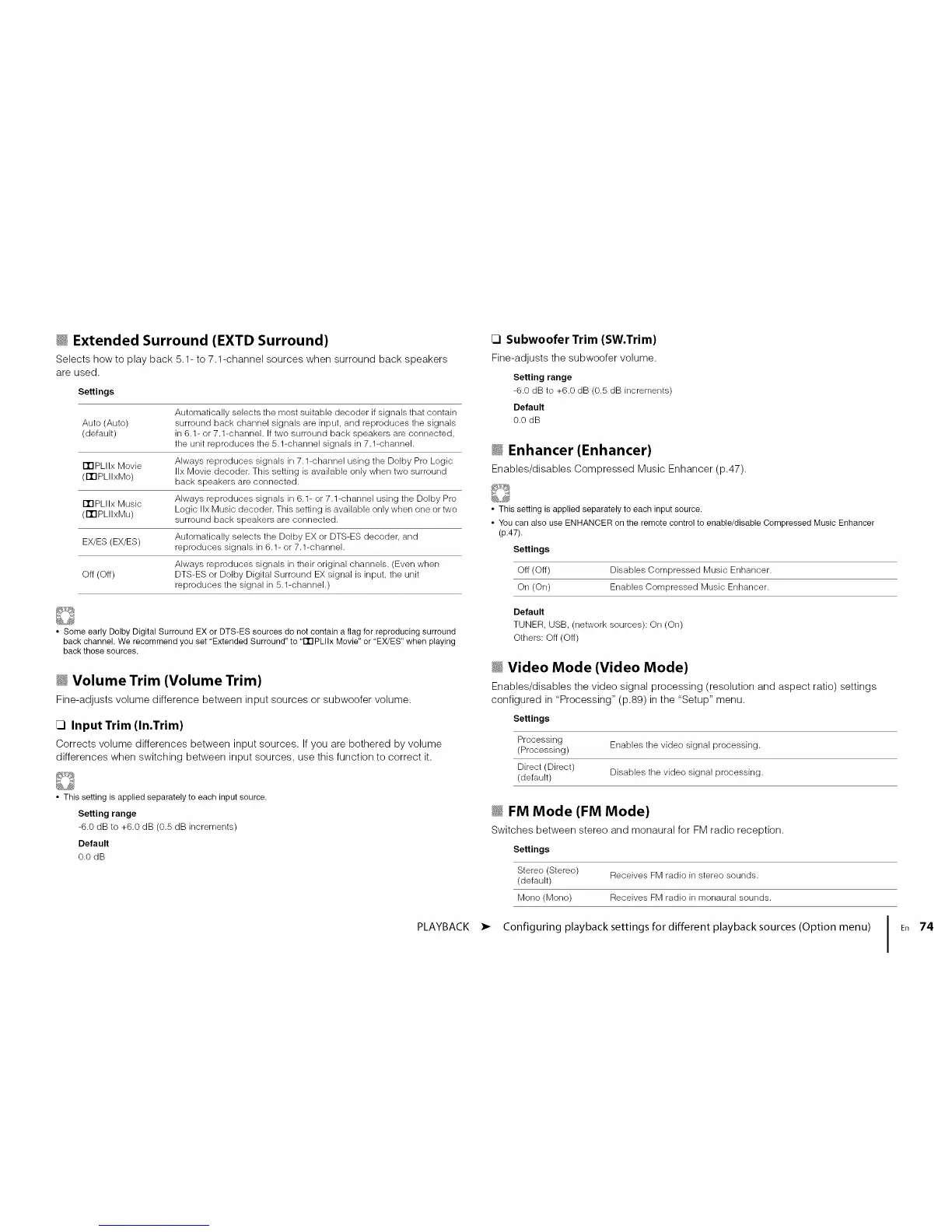 back channel. We recommend you set "Extended Surround" to "ITIPLIIx Movie" or "EX/ES" when playing