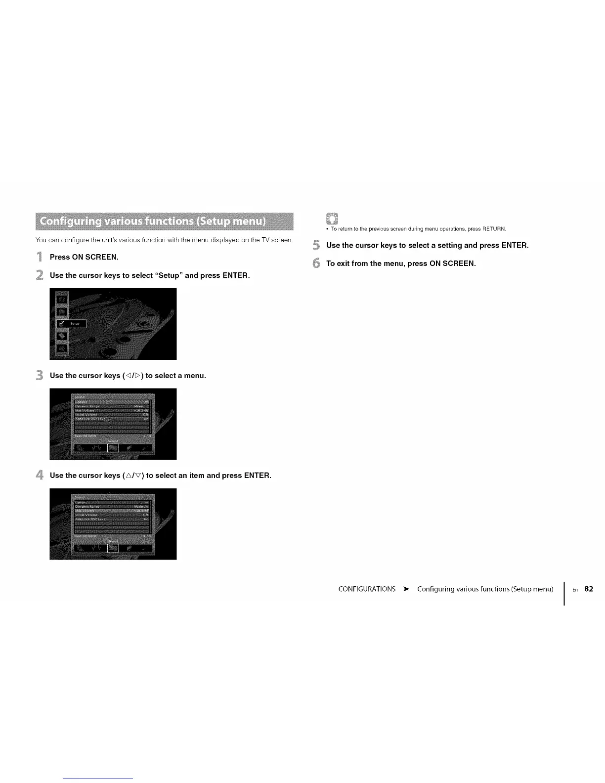 CONFIGURATIONS • Configuring various functions(Setup menu) I En 82