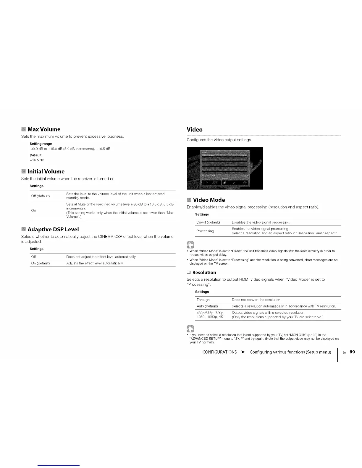 • When 'Video Mode" is set to "Direct", the unit transmits video signals with the least circuitry in order to