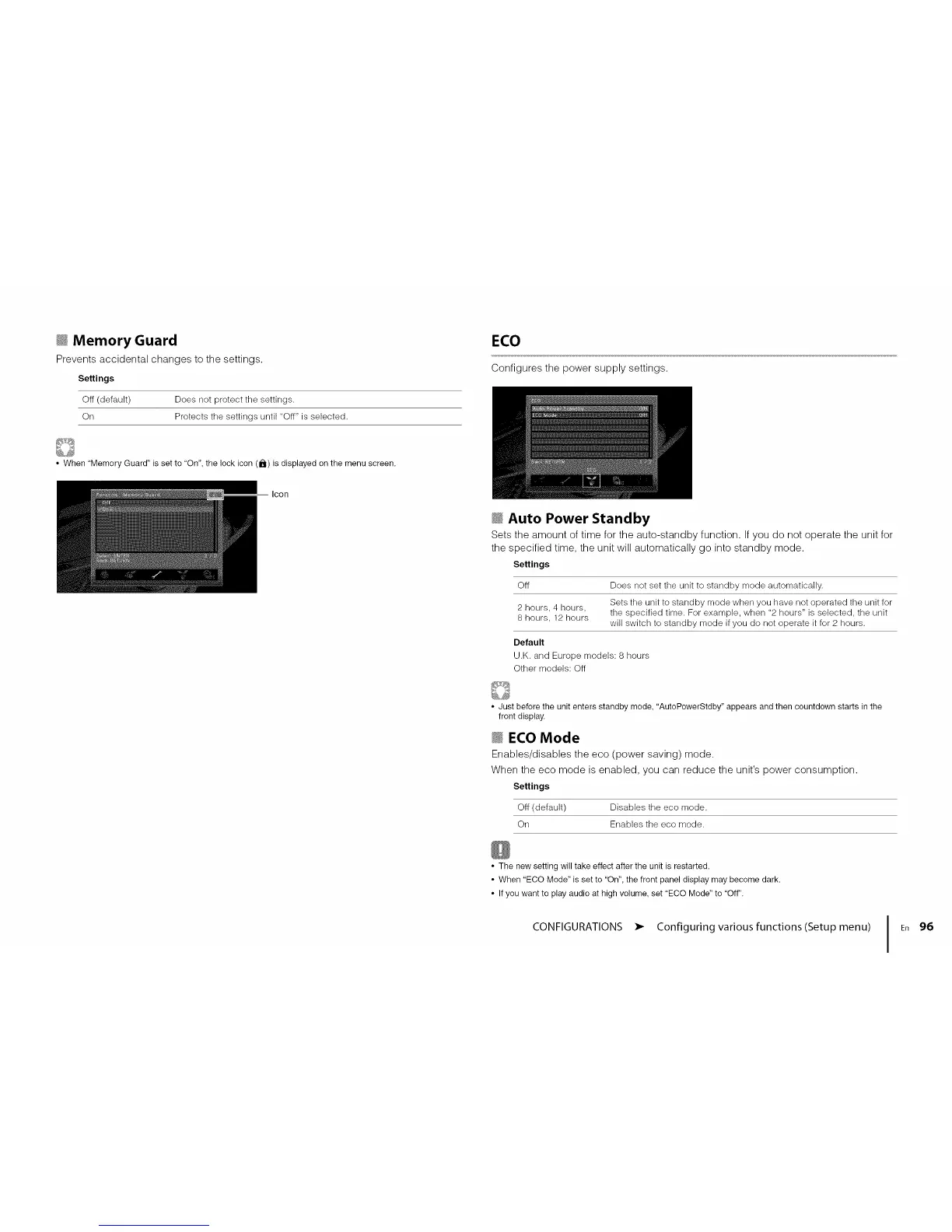 • When "Memory Guard" is set to "On", the lock icon (i_1) is displayed on the menu screen.