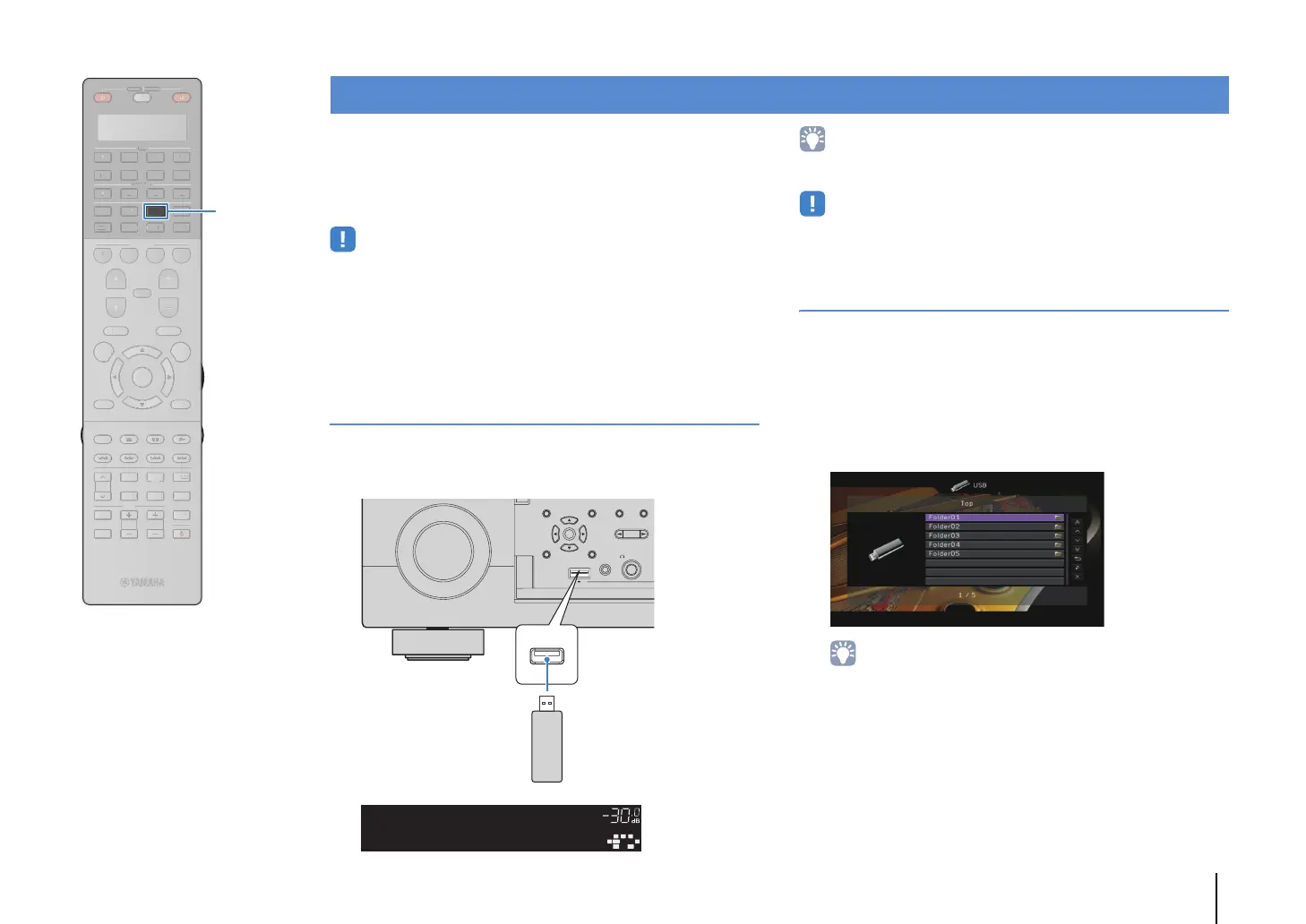 • Stop playback of the USB storage device before disconnect it from the USB jack.